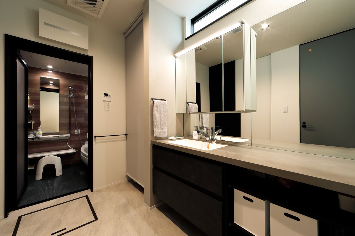 スムーズな洗濯動線に、といったご要望をお伺いし玄関は、