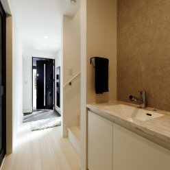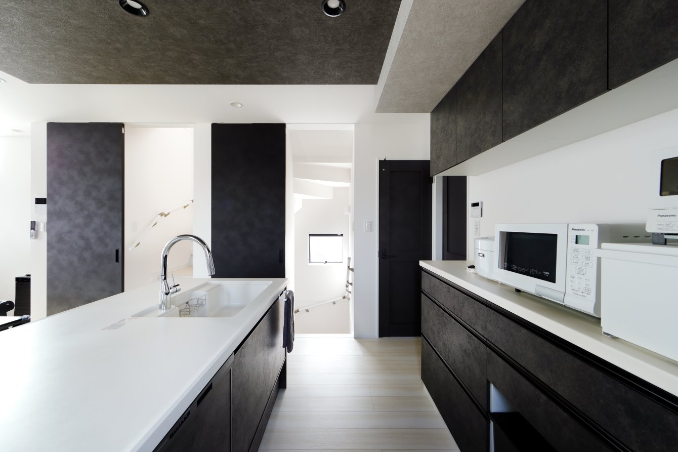スムーズな家事動線を確保しつつ生活感を見せない工夫で、