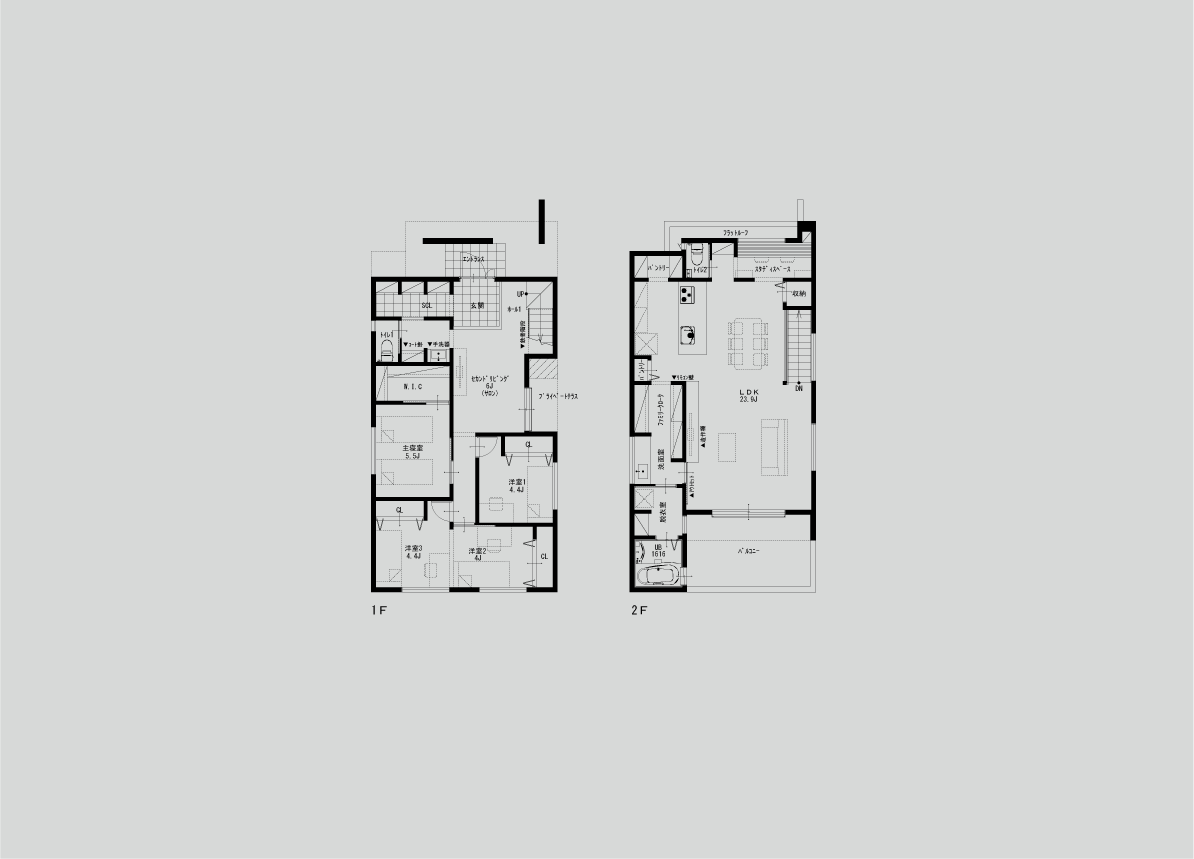 1 階は 3 人の子どもたちの個室と寝室、自由に使える