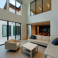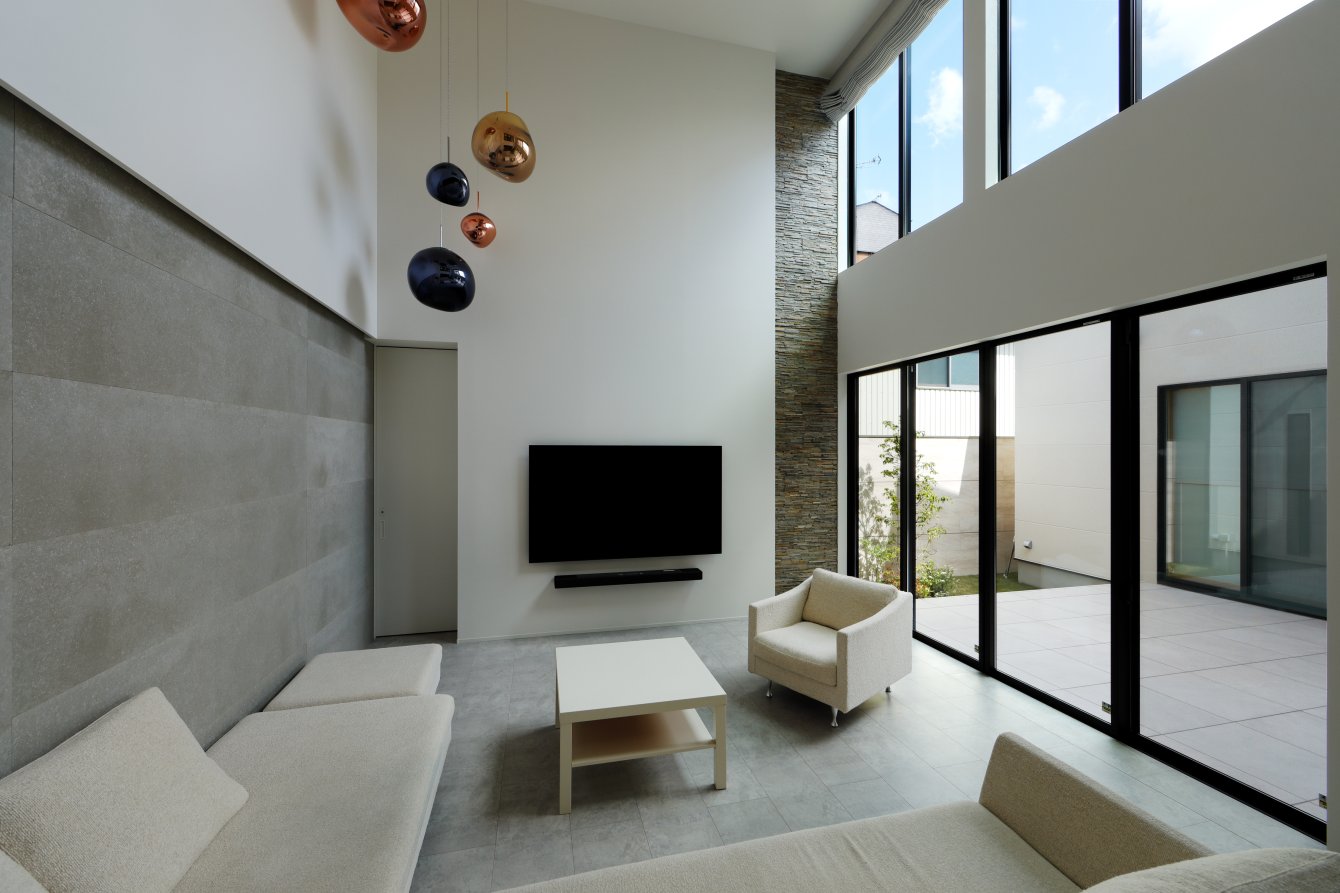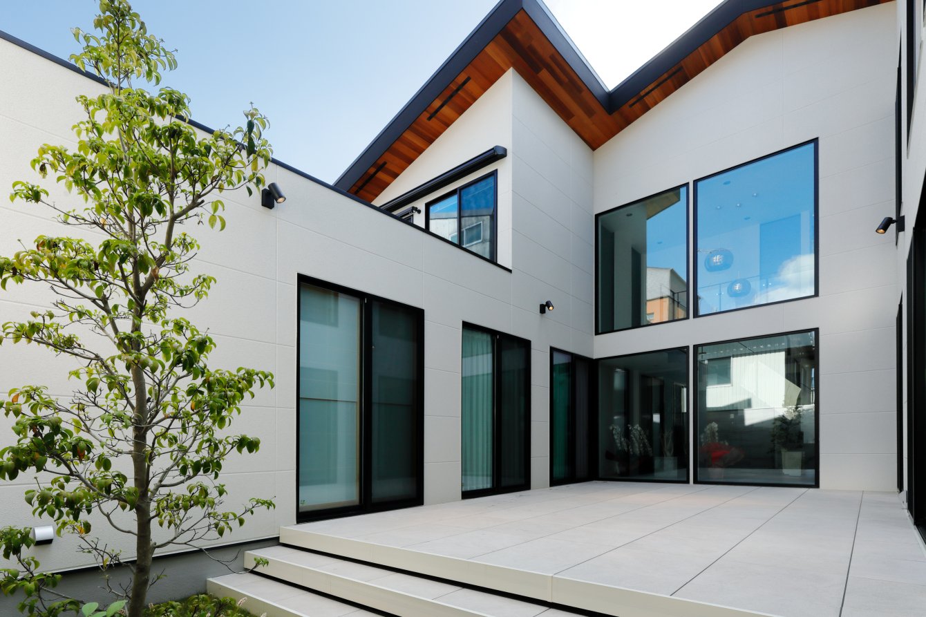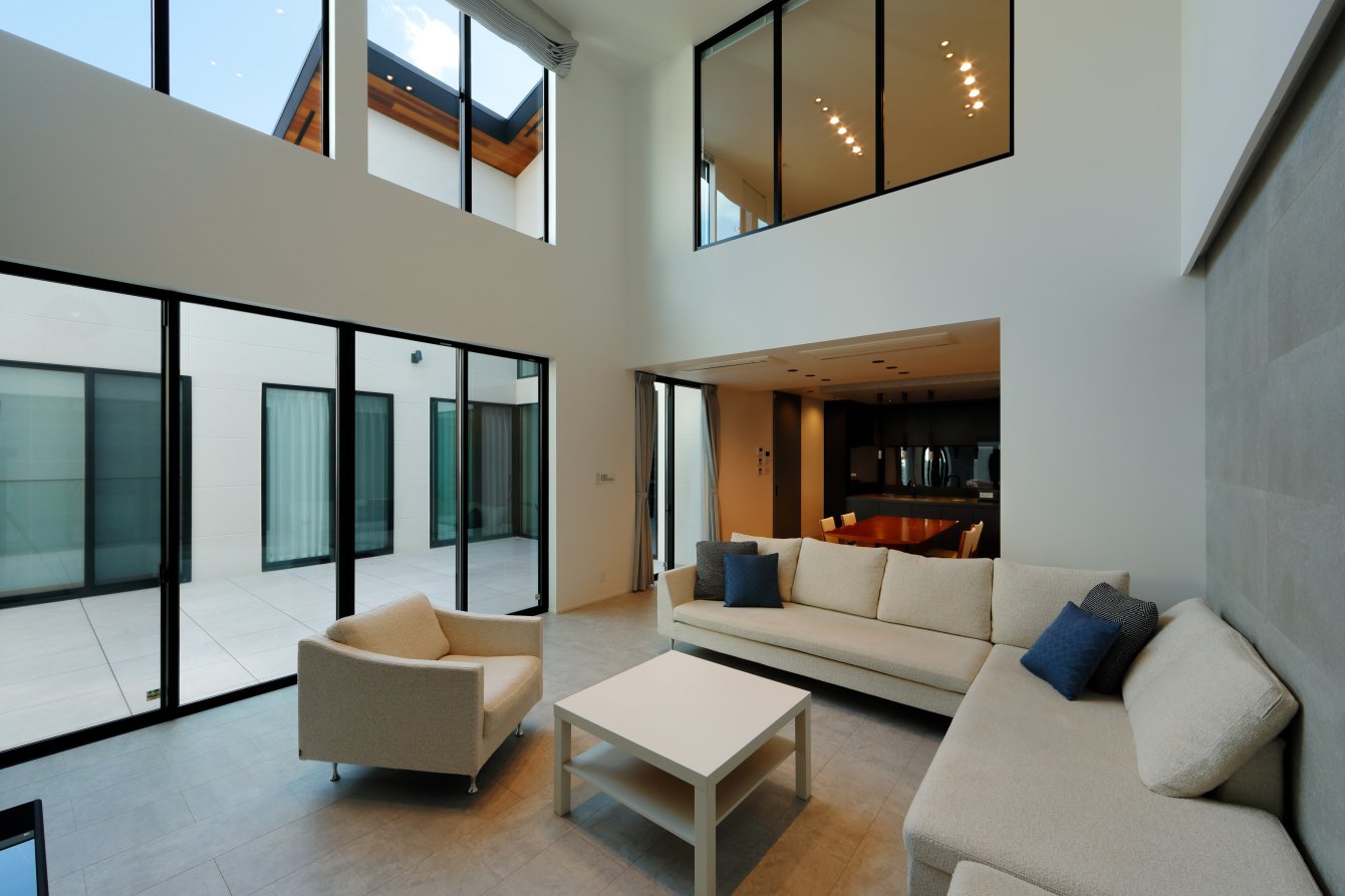 中庭から光と風を取り込みながら三世代が