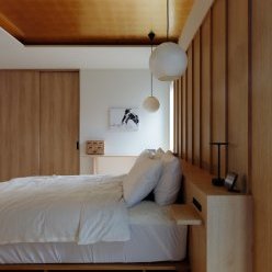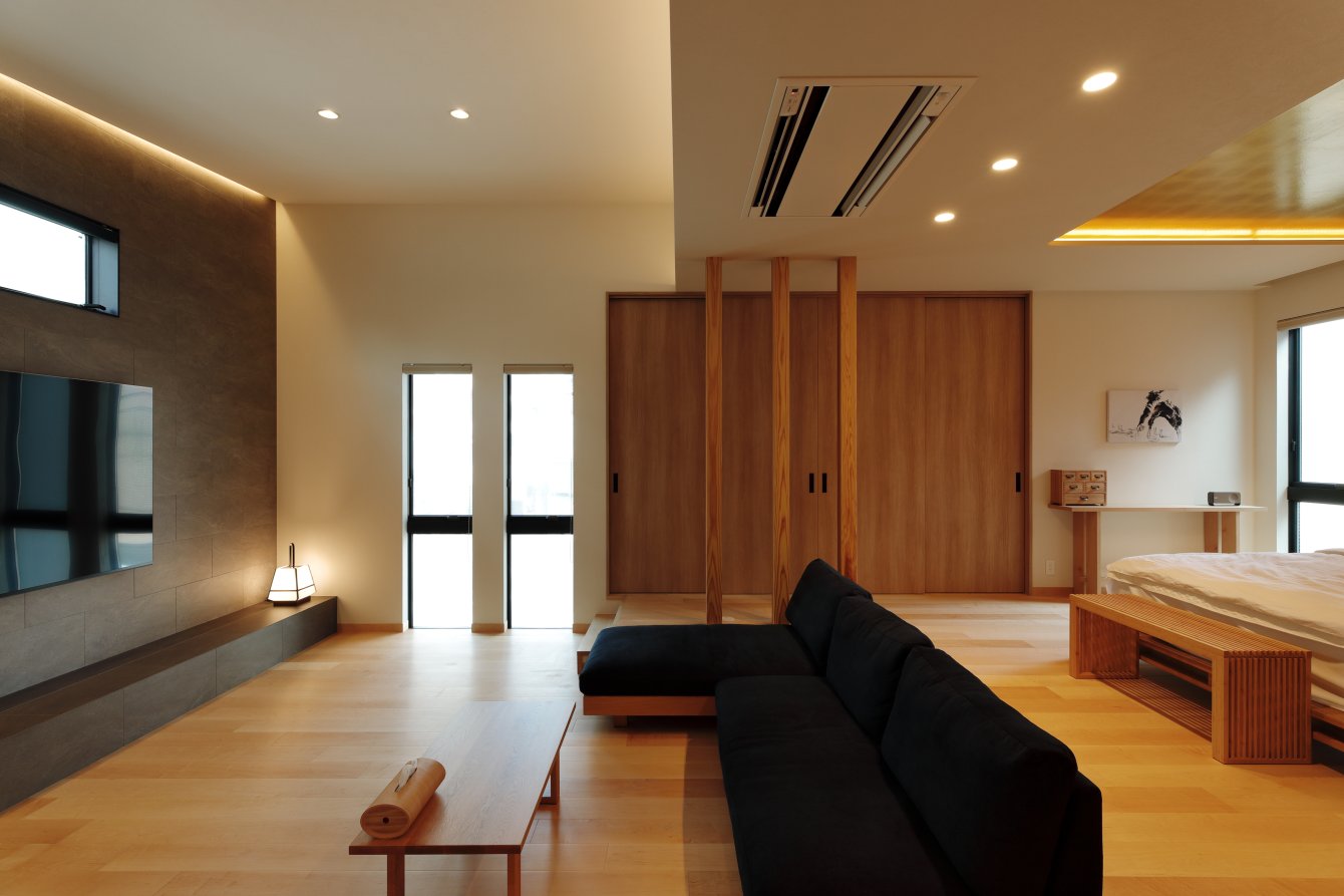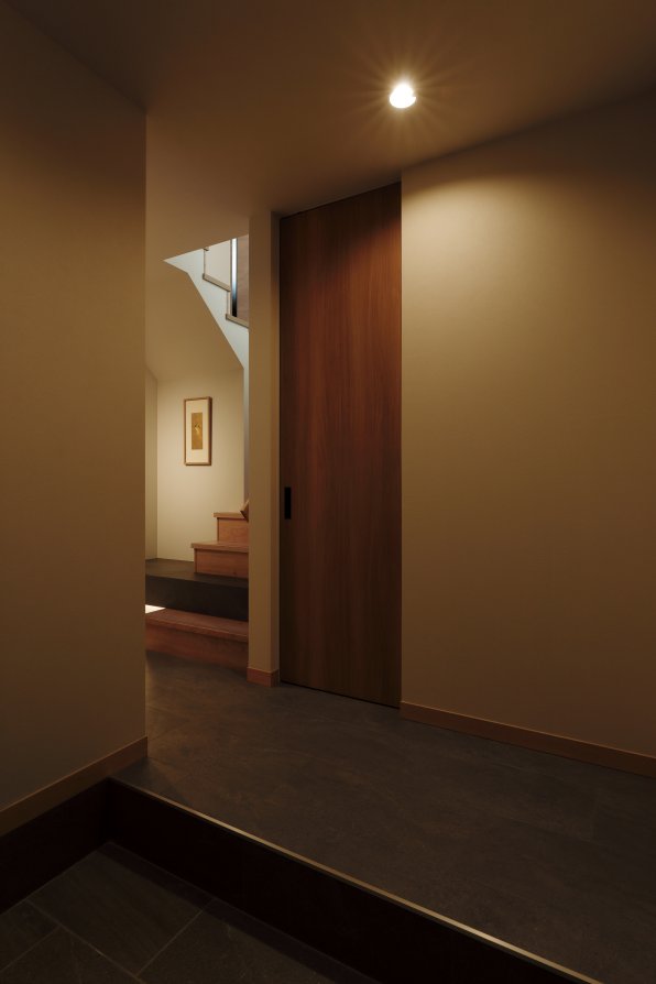 自宅付近の土地を購入し「離れの個室」を叶えたK様。ミニマムデザインと和の意匠を融合した心安らぐ空間です。1階は愛車を格納できるガレージハウスで、2階は寝室からリビングへと続くスイートルーム。ミニキッチンと浴室を備え、ホテルステイのようなひととき。コンセプトは、K様ご所縁のクワイエットラグジュアリーなホテルの再現。細部までこだわり抜き、デザインを追求しました。遊び心から出発した今回の家づくり。忙しい日常をOFFにして、ゆったりくつろぐ隠れ家が完成しました。