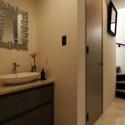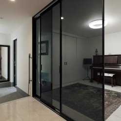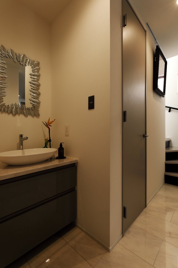 閑静な住宅街。坂道を上ると、小高い丘の上にK様の住まいが見えてきます。視界が広がる開放的な立地を活かし、光を受け止めるLDKを3階に。白をベースとした品のある空間が、海外製の家具やオブジェ、絵画をセンスよく引き立てています。2階フロアにはランドリースペースや洗面など水回り機能を集約。廊下に面した引き戸が、さりげなく生活感を遠ざける役割も。1階は防音の音楽室を設け、音と向き合う特別な居場所を叶えました。用途の異なる空間を縦に重ねることで、28坪という数字からは想像できないのびやかさ。選び抜かれた大人のインテリアが映える、白いキャンバスのようなお住まいです。