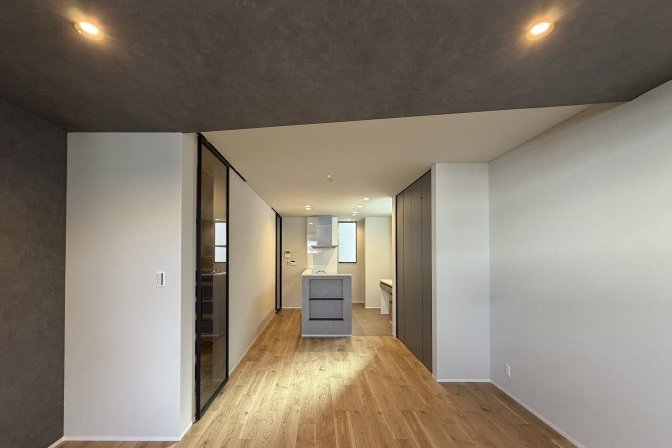 注文住宅でも人気のガラス建具を採用し、視線が抜けることで空間に広がりと上質さをプラスしました。