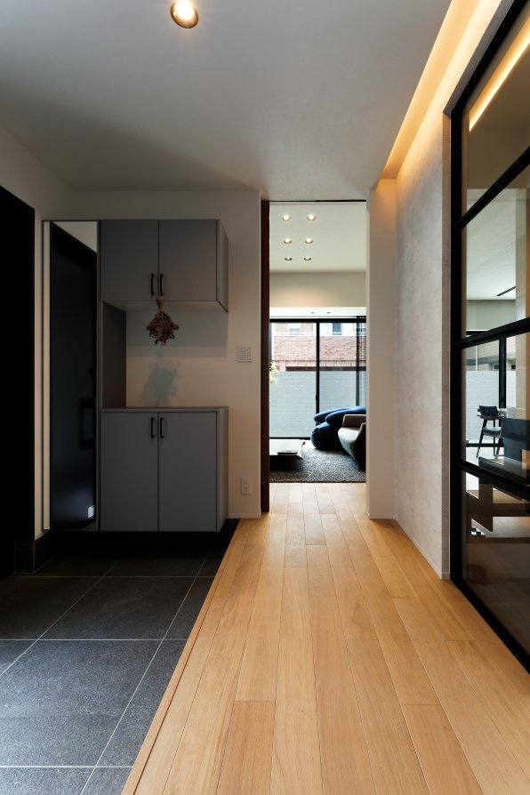 スムーズな洗濯動線に、といったご要望をお伺いし玄関は、