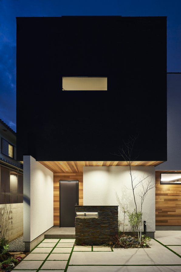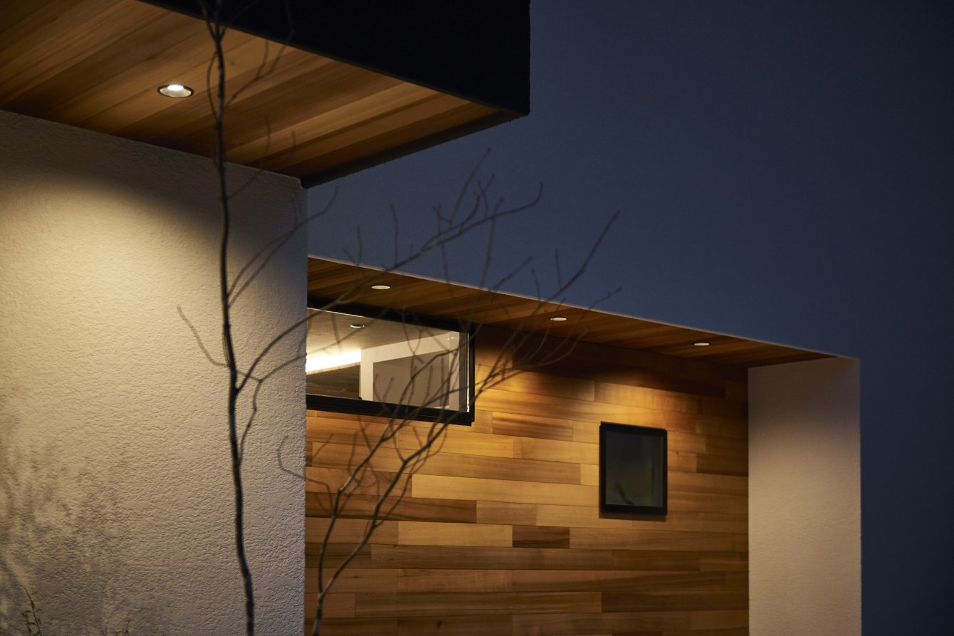 夜になると照明が 外観や無垢を照らし、