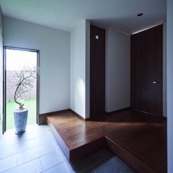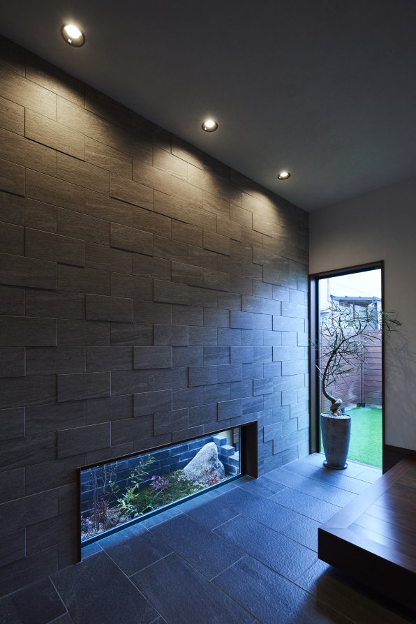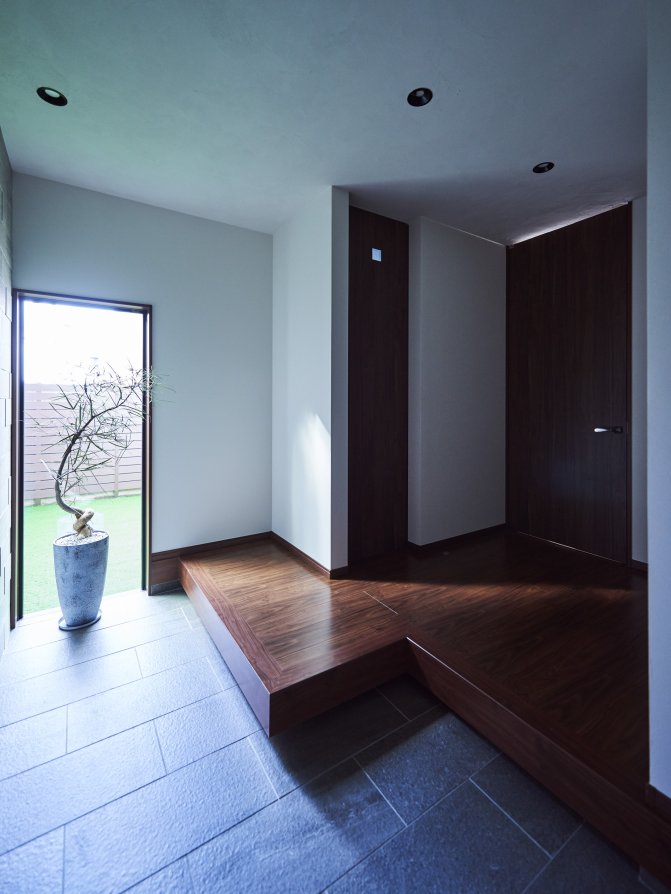 玄関には窓の向こうに坪庭があり、