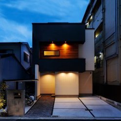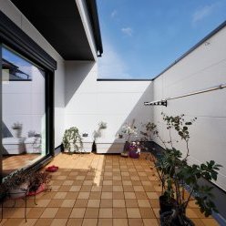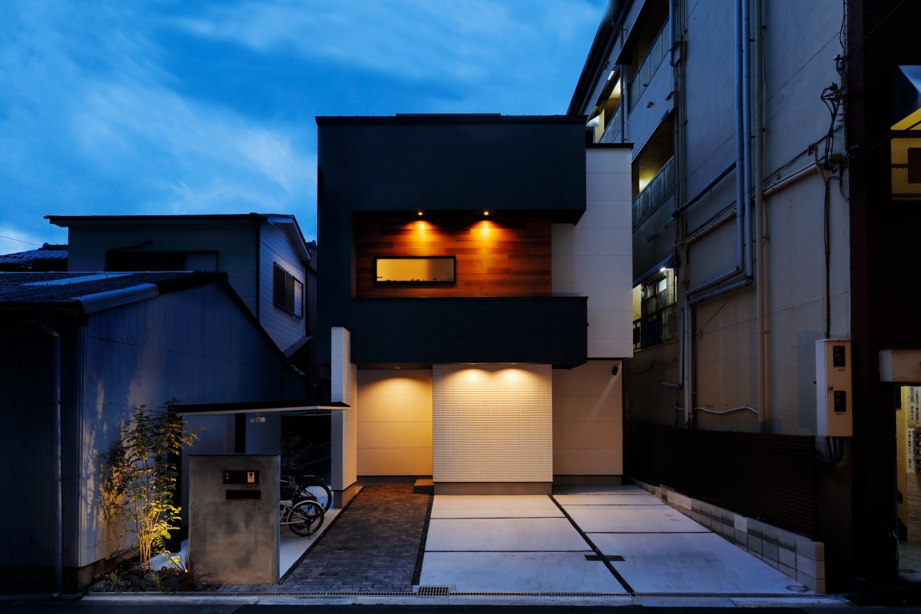 間口 9 メートルで、左右に隣家が迫る M 様の敷地。