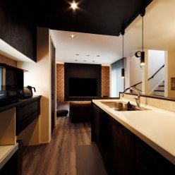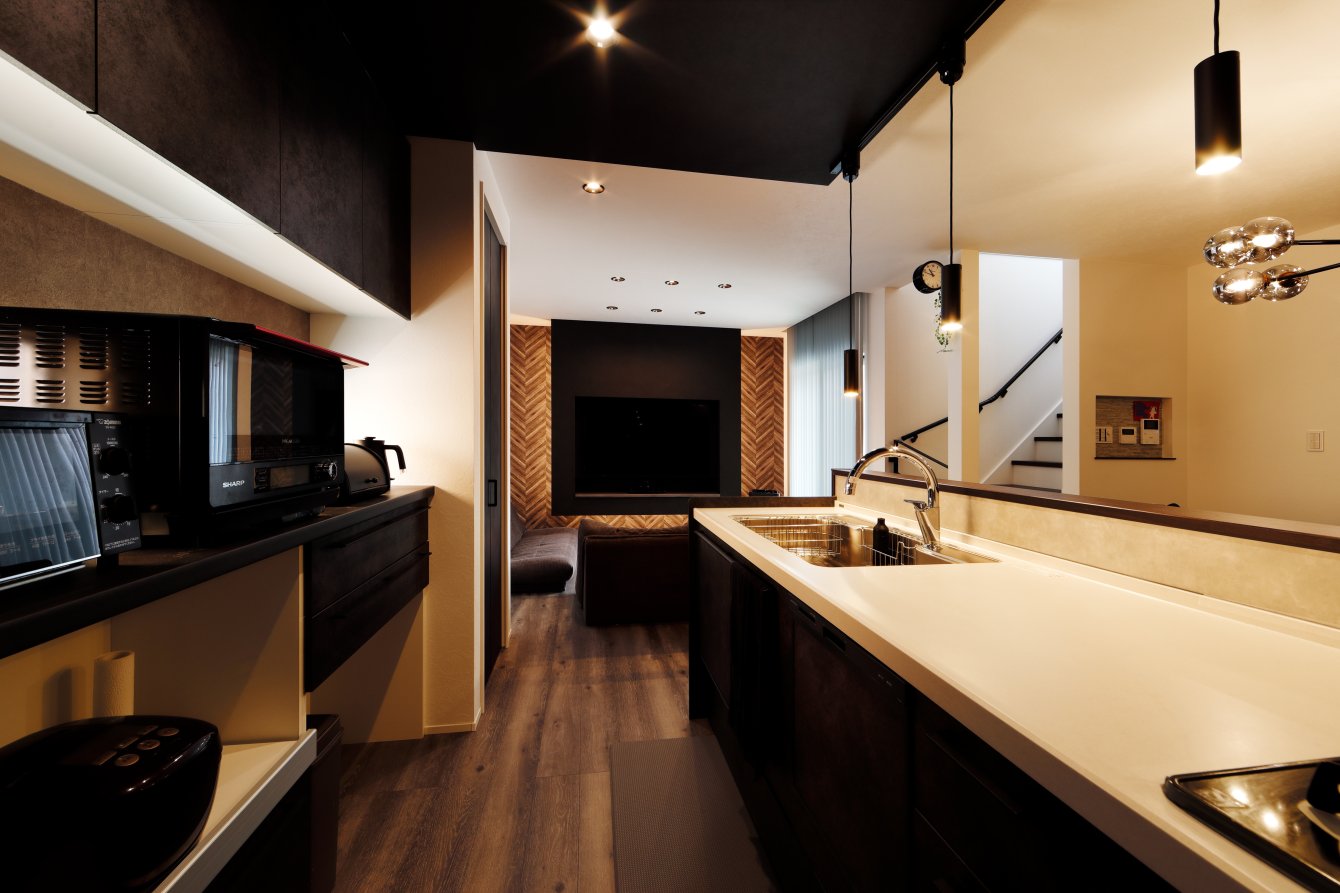 マットブラックと木質感を掛け合わせ、スタイリッシュで