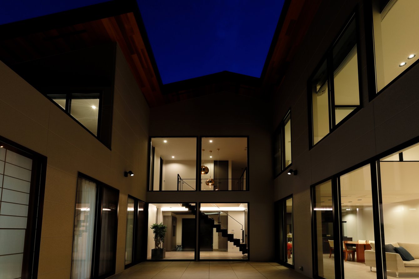 中庭から光と風を取り込みながら三世代が