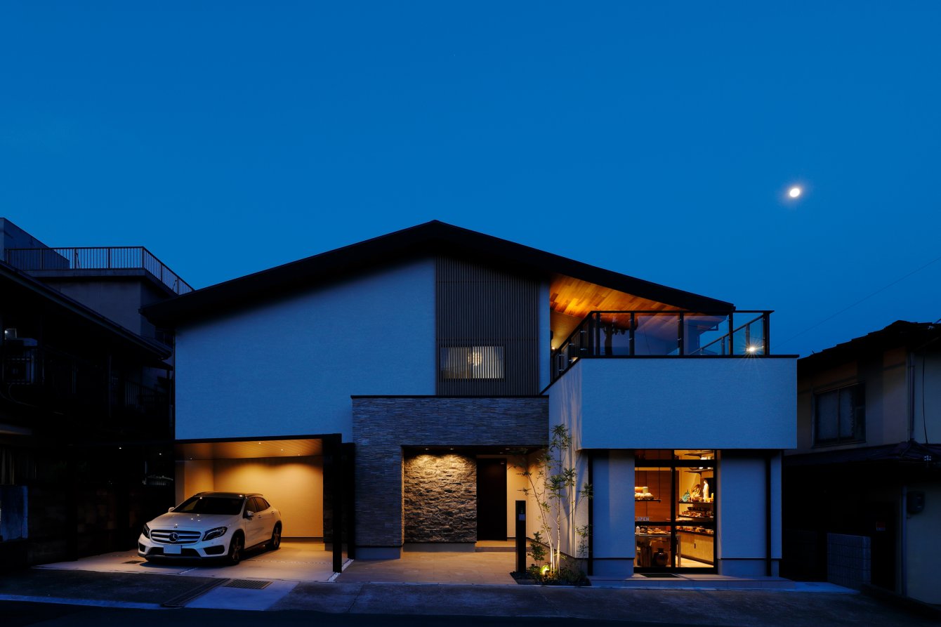 和モダンの外観とホテルライクな内部空間。 店舗併設の