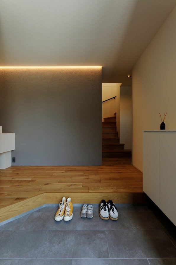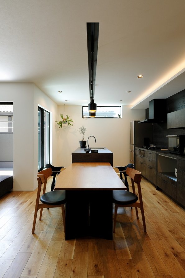 直線的デザインと木のぬくもり。