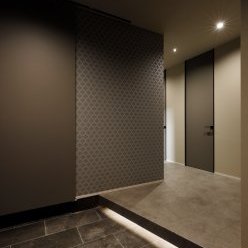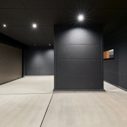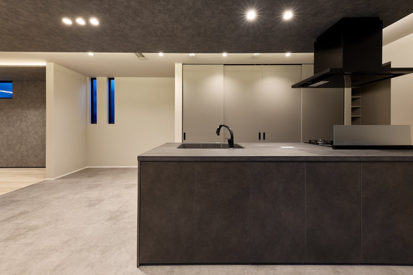 静けさと直線美が調和し、凛と佇むガレージハウス。控えめでありながらも、圧倒的な美しさを纏い、訪れる者を魅了する住まい。