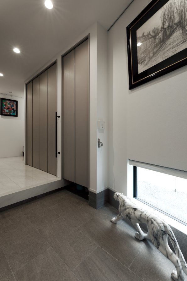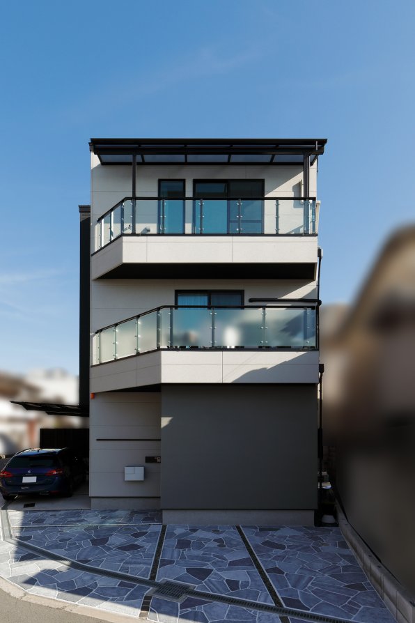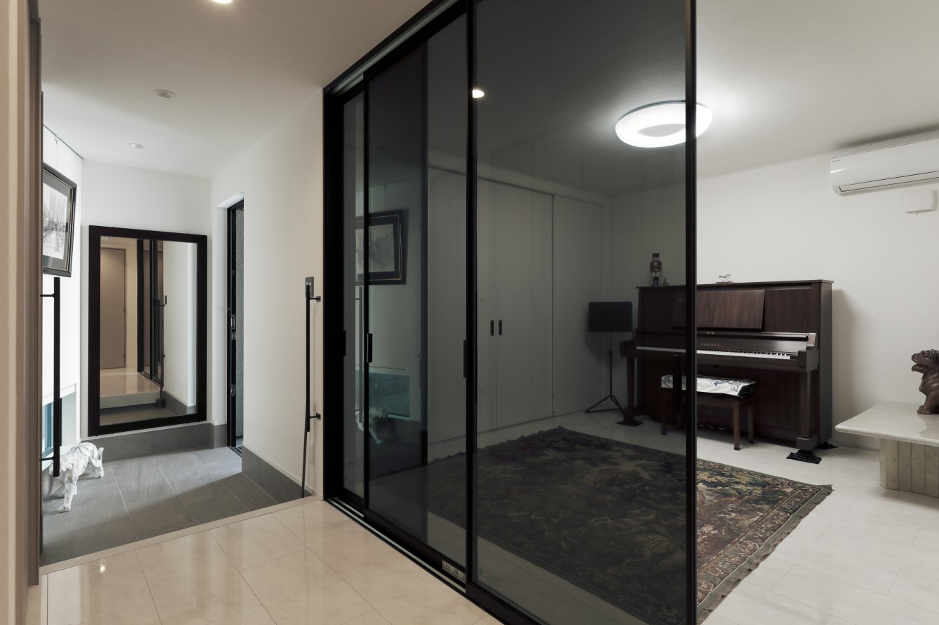 閑静な住宅街。坂道を上ると、小高い丘の上にK様の住まいが見えてきます。視界が広がる開放的な立地を活かし、光を受け止めるLDKを3階に。白をベースとした品のある空間が、海外製の家具やオブジェ、絵画をセンスよく引き立てています。2階フロアにはランドリースペースや洗面など水回り機能を集約。廊下に面した引き戸が、さりげなく生活感を遠ざける役割も。1階は防音の音楽室を設け、音と向き合う特別な居場所を叶えました。用途の異なる空間を縦に重ねることで、28坪という数字からは想像できないのびやかさ。選び抜かれた大人のインテリアが映える、白いキャンバスのようなお住まいです。